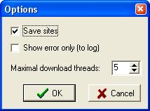 Use APD options to enable/disable save Sites function, to set maximal number of download threads and to enable/disable show error only function. You can do it by clicking Site -> Options or by using Options button on toolbar.