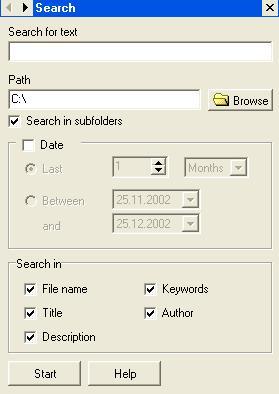 This option allows you to define document's description fields where search will be made. For example, if you check Title box and uncheck all others, search will be made in Title fields of documents which contained path folder or its subfolders.
